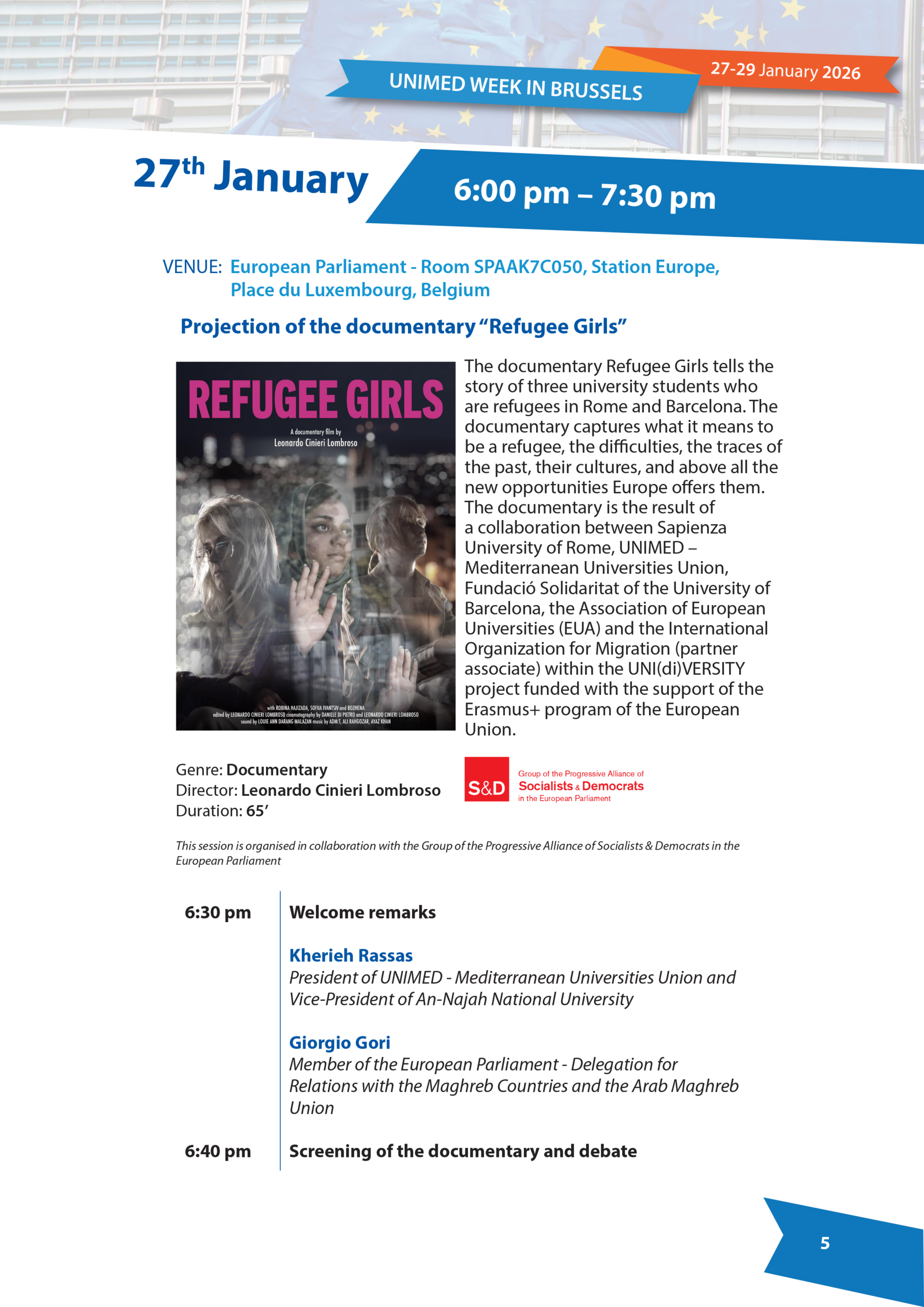 I’m pleased to share that my documentary Refugee Girls will be screened during the UNIMED Week in Brussels 2026, on 27 January, at the European Parliament.
